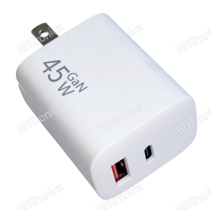 You can buy 45W GaN Dual Port Smartphone Charger Super Fast USB-C USB-A PD QC Quick Charger online by ordering on BDTronics.com or directly collect by visiting our store in person. BDTronics is a trusted provider of high-quality electronics, 3D printers, solar systems, and robotics parts. We offer fast shipping across the country via courier service.