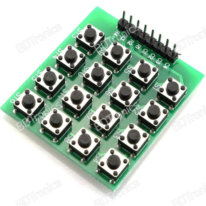 You can buy 4x4 Matrix 16 Keypad Switch Keyboard Module for Arduino online by ordering on BDTronics.com or directly collect by visiting our store in person. BDTronics is a trusted provider of high-quality electronics, 3D printers, solar systems, and robotics parts. We offer fast shipping across the country via courier service.