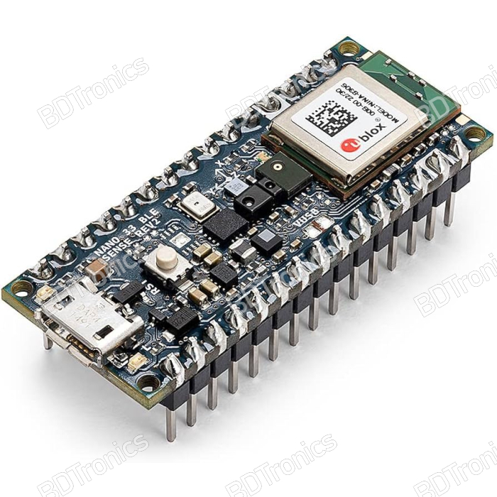 Arduino Nano 33 BLE Sense Rev2, Arduino Nano 33 BLE Sense with headers, original Arduino Nano 33 BLE Sense, Arduino Nano BLE Sense Bangladesh, BDTronics Arduino, Arduino AI board, TinyML Arduino, Edge AI microcontroller, nRF52840 development board, Bluetooth Low Energy Arduino, AI sensor board, Arduino machine learning board, Arduino gesture sensor, Arduino microphone board, Arduino IMU sensor, Arduino environmental sensor, Arduino temperature humidity sensor, Arduino pressure sensor, Arduino proximity sensor, Arduino color sensor, Arduino light sensor, Arduino Nano AI, Arduino Nano BLE Sense price in Bangladesh, buy Arduino Nano 33 BLE Sense BDTronics, Arduino Nano 33 BLE Sense original, Arduino Nano BLE Sense Rev2 Bangladesh, Arduino IoT board, Arduino AI development board, Arduino TinyML board, Arduino embedded AI, Arduino Nano with sensors, Arduino Nano BLE Sense features, Arduino Nano BLE Sense specifications, Arduino Nano BLE Sense use cases, Arduino Nano BLE Sense projects, Arduino BLE microcontroller, Arduino ML board, Arduino smart sensor board, Arduino wearable development board, Arduino AI IoT board, Arduino BLE development board, Arduino sensor fusion board