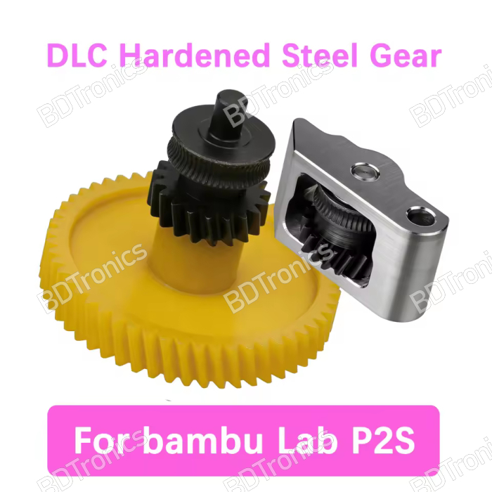 The Bambu Lab P2S DLC Hardened Steel Extruder Gear Kit is a premium upgrade designed to enhance your P2S 3D printer’s extrusion performance. Crafted from DLC (Diamond-Like Carbon) coated hardened steel, this kit offers extreme wear resistance, optimal filament grip, and durability, making it perfect for abrasive and engineering filaments like carbon fiber, glass fiber, and PA-CF.