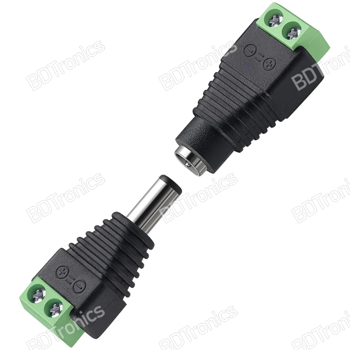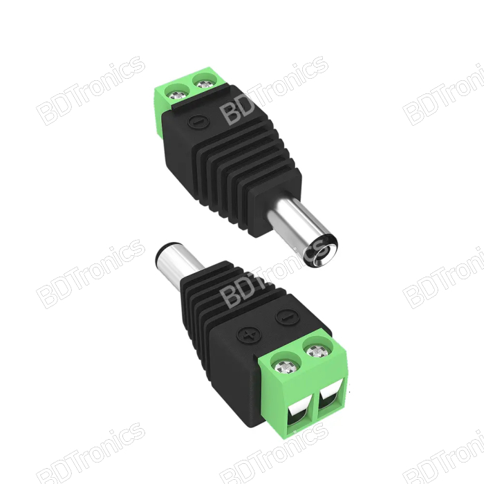 The Barrel Connector Male-Female Pair is a practical and reliable power connection solution widely used for low-voltage DC applications in Bangladesh. This adapter set allows easy connection between a standard 5.5×2.1mm DC barrel jack and bare wires using secure screw terminals. It is especially useful for projects where soldering is not preferred, such as CCTV camera installations, LED strip lighting, DIY electronics, power distribution systems, and breadboard-based prototyping.