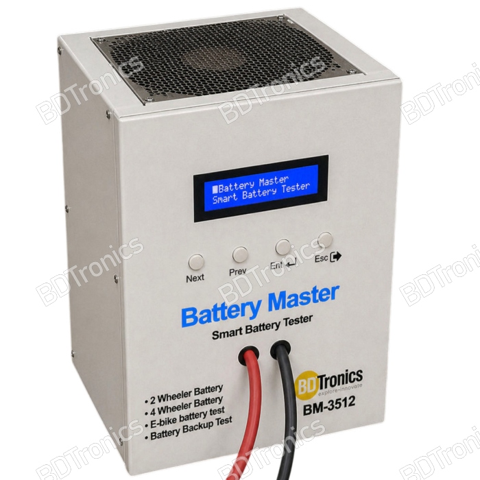 Professional-grade smart battery tester for 2 wheeler battery, 4 wheeler battery, e-bike battery, battery backup test, battery load test etc. for accurate diagnostics of automotive and industrial lead-acid batteries. It is engineered for workshops, battery dealers, solar technicians, and service centers that require fast, reliable, and standardized battery health evaluation.