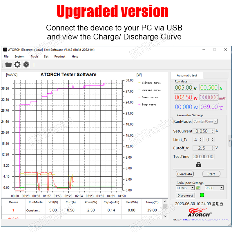 সাথে রয়েছে Bluetooth এবং USB সাপোর্ট। যার দ্বারা স্মার্টফোন বা পিসিতে লোড টেস্টের রেজাল্ট ও Graph সংরক্ষন করা যাবে।