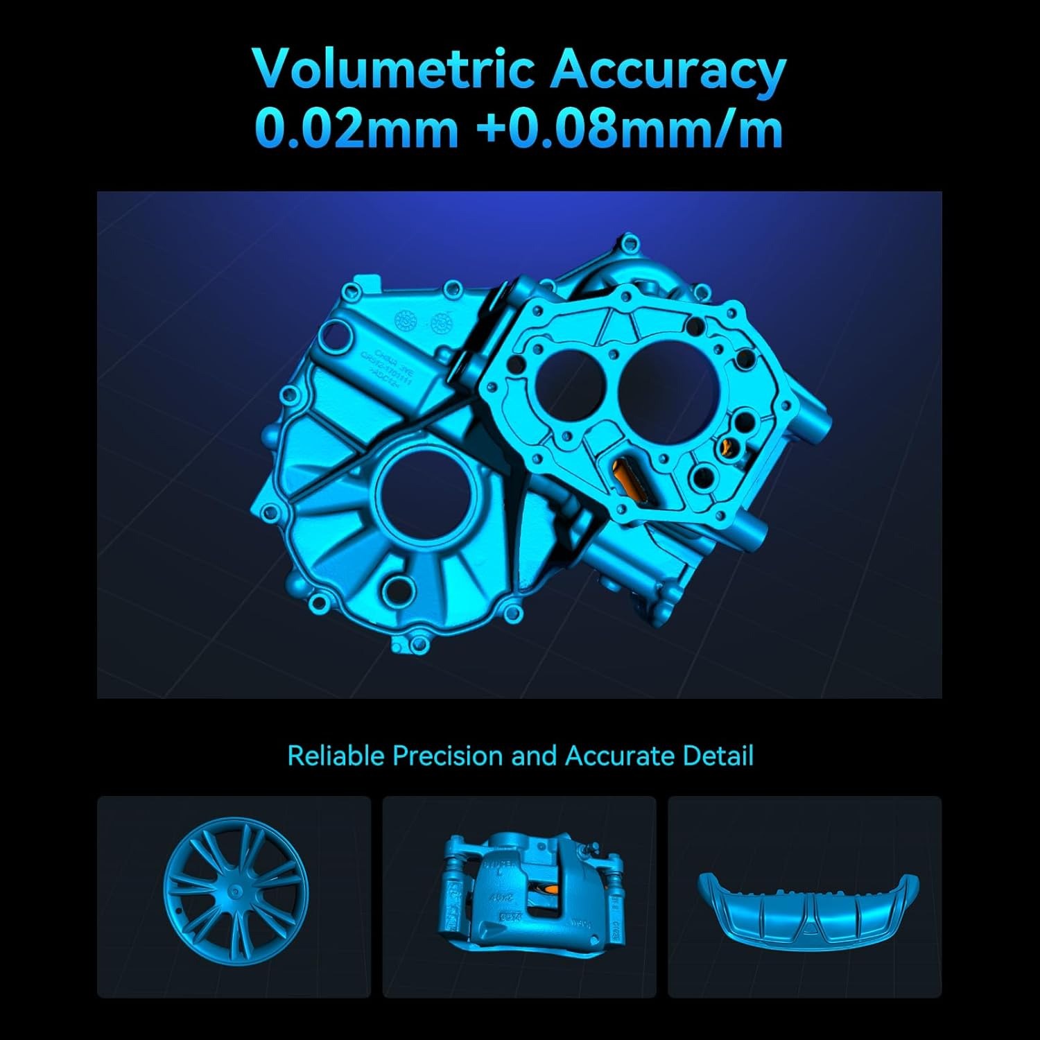 Metrology-Grade Precision: Achieves 0.02mm accuracy with volumetric accuracy of 0.02mm+0.08mm/m, perfect for engineering, product design, and industrial inspection.
