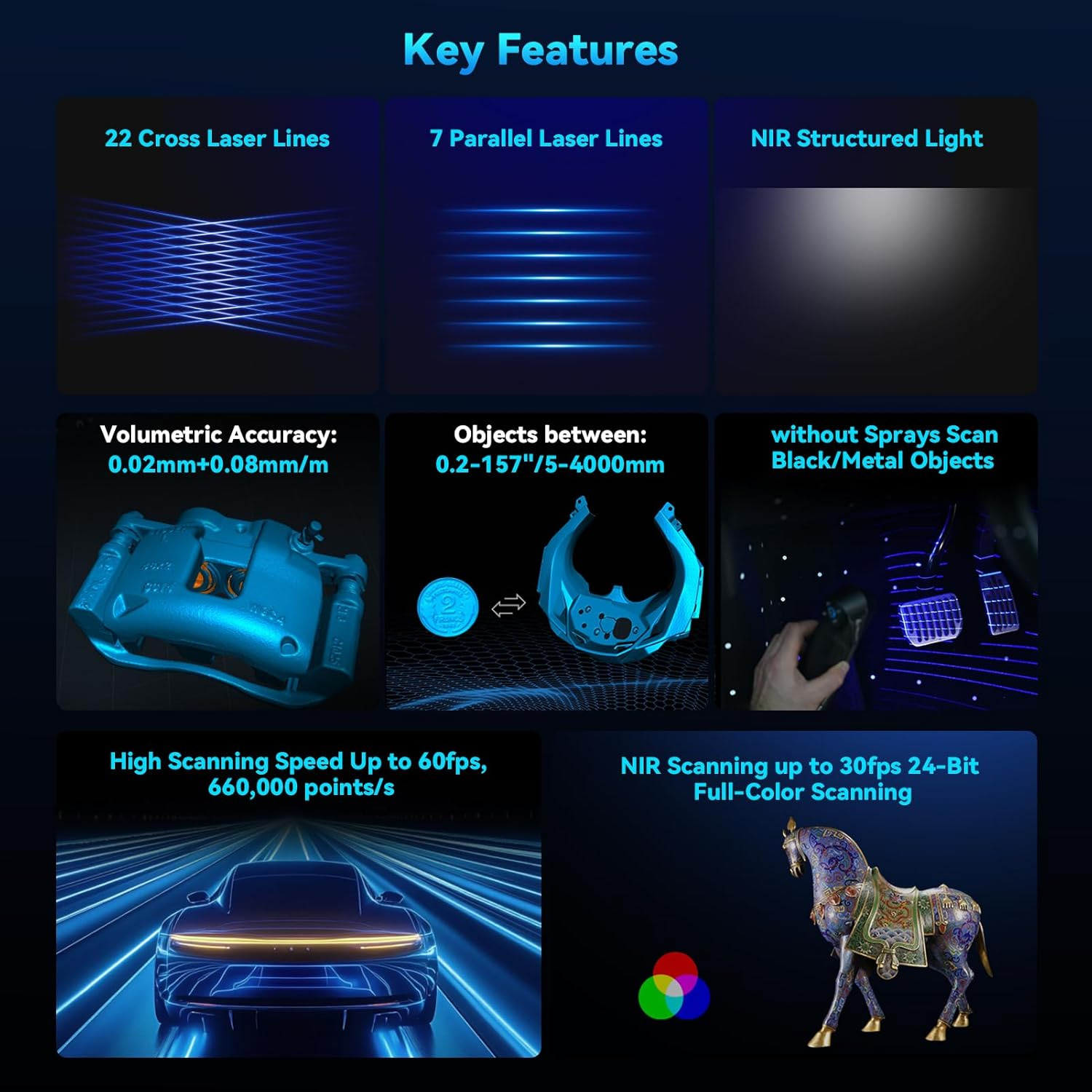 Scanning Modes: 22 cross laser lines, 7 parallel laser lines, NIR structured light
