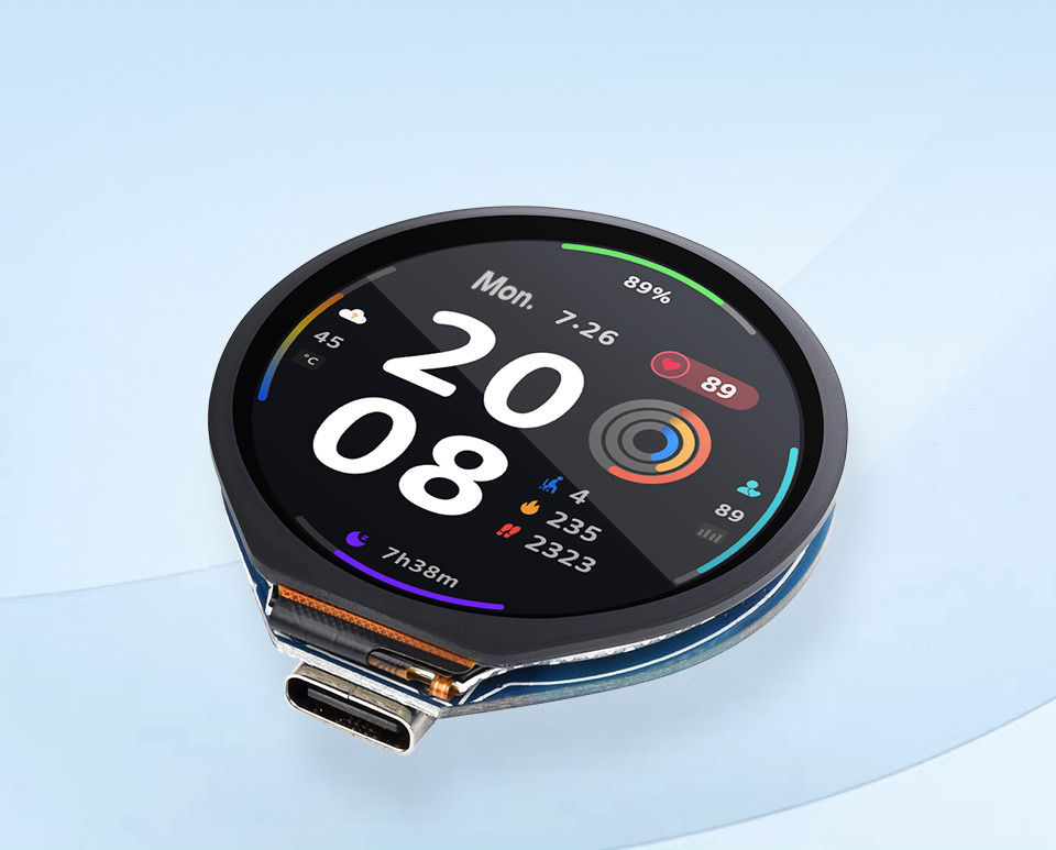 - Onboard 1.28 inch capacitive touch LCD with 240×240 resolution and 65K colors