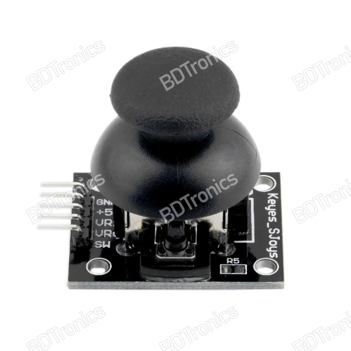 The Joystick 5Pin Breakout Module for Arduino is a compact and versatile analog joystick module, ideal for robotics, gaming controllers, and electronic projects. Designed similarly to PS2 (PlayStation 2) analog joysticks, it offers precise directional control using two potentiometers for X and Y axes, along with a selectable push-button feature. This module operates on a 5V supply and provides accurate analog voltage readings, making it perfect for Arduino, microcontroller, and DIY electronics projects in Bangladesh.