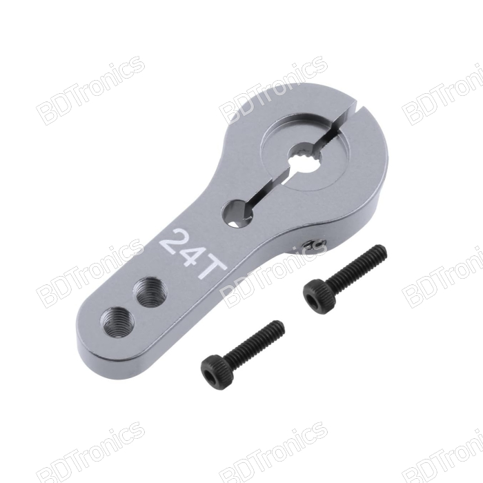 The Metal 24T Aluminum Servo Horn is a high-precision accessory designed for Hitec servo motors, ideal for RC cars, planes, boats, and robotics applications. CNC-machined from durable aluminum with an anodized finish, this servo horn ensures long-lasting performance and precise control. Compatible with 24T splined Hitec servos and M3 threaded attachments, it comes with steel bolts for secure installation and includes an L-shaped hex wrench for easy assembly. Perfect for hobbyists and professionals seeking reliability and strength in servo linkage components in Bangladesh.