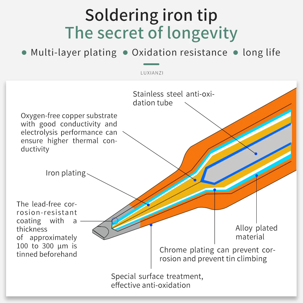 The 900M-T Series Pure Copper Soldering Tips are designed for professional and hobbyist soldering work. Made from oxygen-free pure copper and coated with a lead-free multilayer plating film, these tips deliver superior heat conductivity, excellent oxidation resistance, and long-lasting performance.
