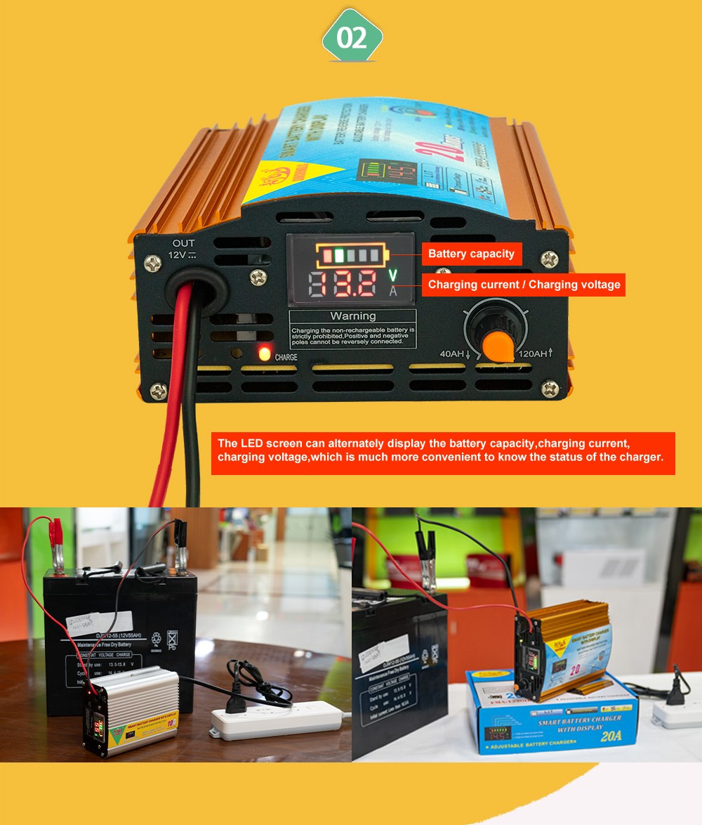 Original Sunchonglic 12V 20A Digital Battery Charger for AGM GEL SLA Lead Acid Battery