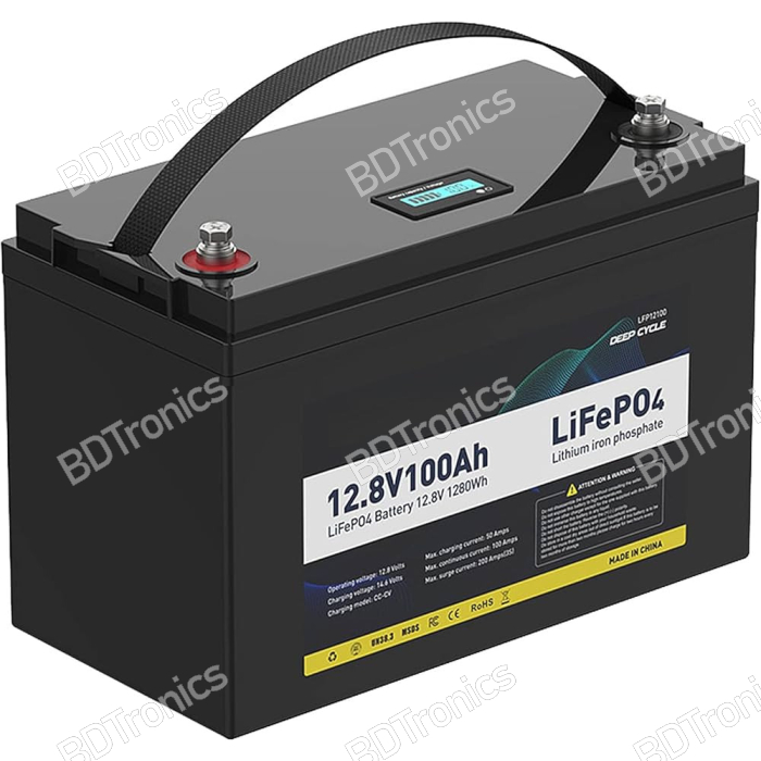 You can buy Generic 12V 100Ah LiFePO4 Battery 4000 Cycle with Bluetooth Monitor online by ordering on BDTronics.com or directly collect by visiting our store in person. BDTronics is a trusted provider of high-quality electronics, 3D printers, solar systems, and robotics parts. We offer fast shipping across the country via courier service.