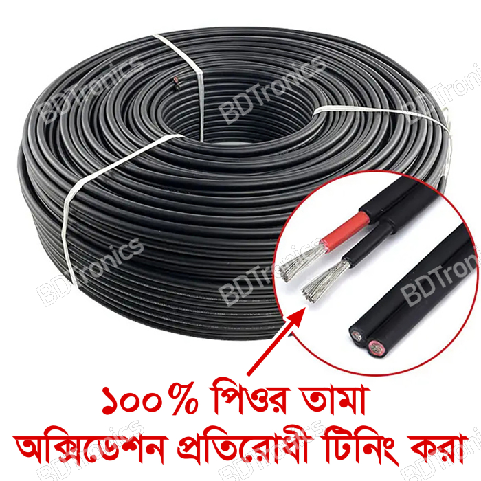 The latest price of 4mm² DC Solar PV Cable Flexible Photovoltaic Cable PV-1F TÜV 2PfG 1169 Pure Copper Wire (Red+Black 2-Core) in Bangladesh is Special Price BDT 350.00 Regular Price BDT 500.00 . You can buy the 4mm² DC Solar PV Cable Flexible Photovoltaic Cable PV-1F TÜV 2PfG 1169 Pure Copper Wire (Red+Black 2-Core) at the best price on BDTronics.com or contact us via phone.
