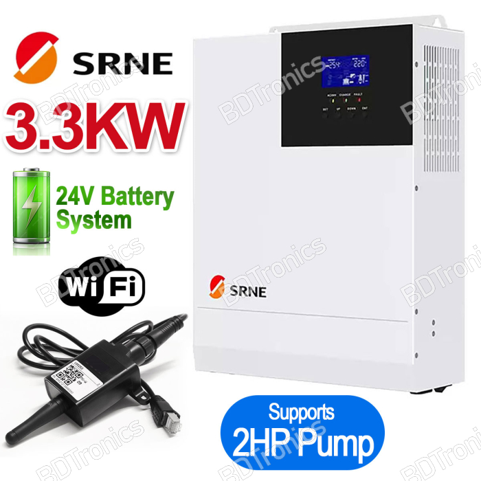 You can buy SRNE 3.3KW Off-Grid Solar Inverter HF2430S80-H with Solar IPS with MPPT Controller online by ordering on BDTronics.com or directly collect by visiting our store in person. BDTronics is a trusted provider of high-quality electronics, 3D printers, solar systems, and robotics parts. We offer fast shipping across the country via courier service.