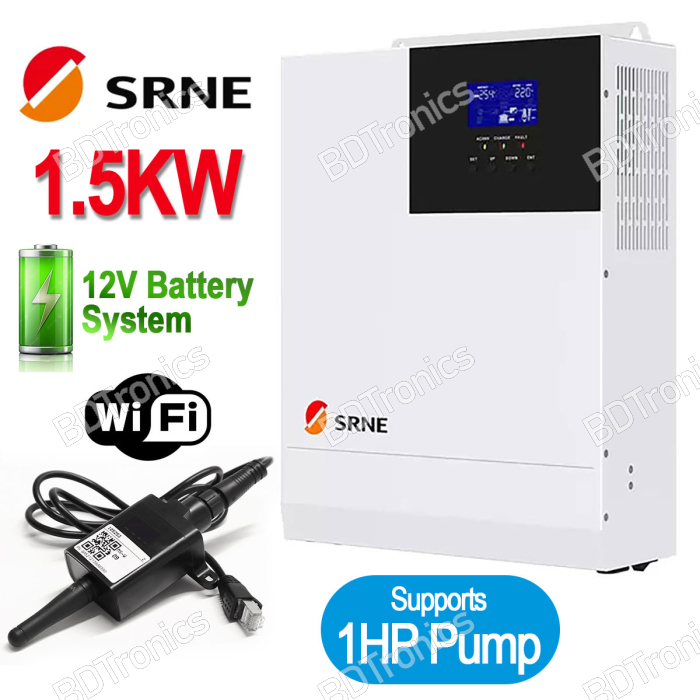 Where to buy SRNE 1.5KW Off-Grid Solar Inverter Pure Sine Wave with MPPT Solar Charge Controller in Bangladesh?You can buy SRNE 1.5KW Off-Grid Solar Inverter Pure Sine Wave with MPPT Solar Charge Controller online by ordering on BDTronics.com or directly collect by visiting our store in person. BDTronics is a trusted provider of high-quality electronics, 3D printers, solar systems, and robotics parts. We offer fast shipping across the country via courier service.