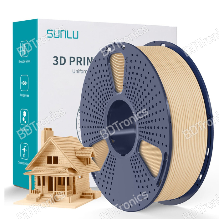 SUNLU Maple PLA Wood, Cherry PLA Wood, Oak PLA Wood, Walnut PLA wood filament 1.75mm (1KG) is a premium 3D printing filament designed to give printed models a realistic wood-like appearance with the ease-of-use of standard PLA. Available in Bangladesh from BDTronics, this filament blends PLA with fine wood particles, producing prints that mimic wood grain texture and finish. Ideal for makers, artists, designers, and hobbyists, SUNLU PLA Wood delivers smooth extrusion, excellent layer adhesion, and minimal warping, making it perfect for creative 3D printing projects. BDTronics supplies this high-quality filament for Ender, Creality, Prusa, and other FDM 3D printers.